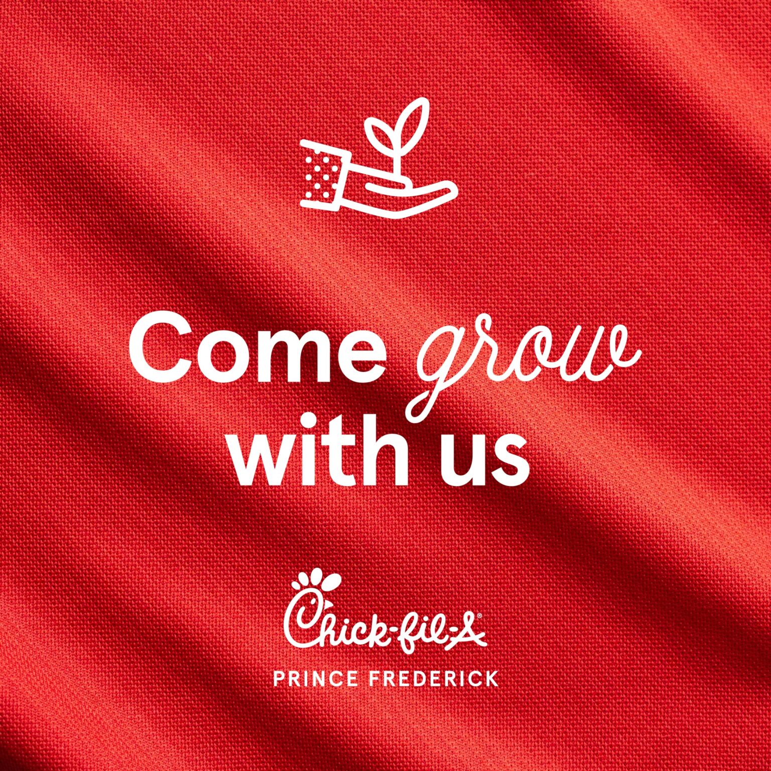 Working at a Chick-fil-A restaurant is more than a job – it’s an opportunity for teamwork and leadership development in a positive, people-focused environment. We hope you’ll apply to join our team. Click the careers button and apply on our website.